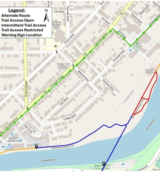 Rochester, New York – A stretch of the popular Genesee Riverway Trail in Rochester will be temporarily closed as construction...
